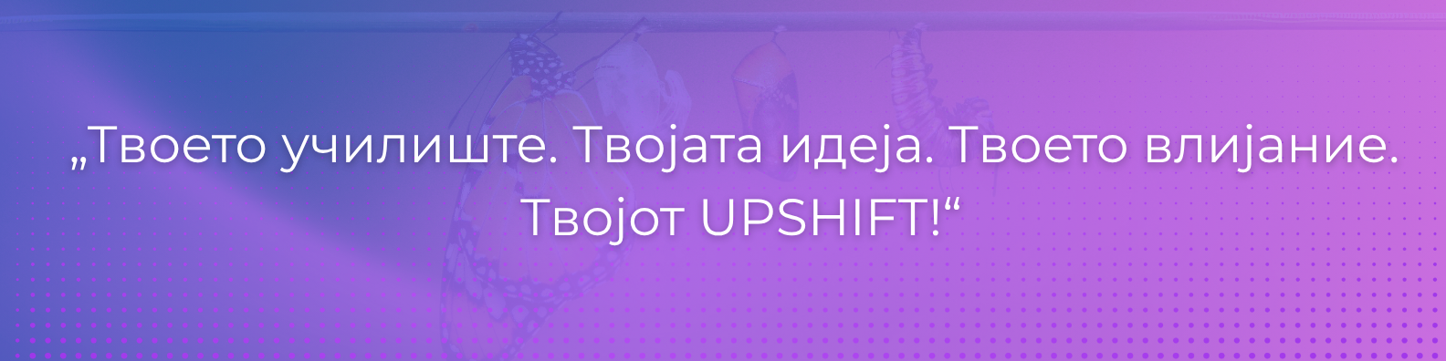 UPSHIFT е програма за социјални иновации базирана на методологијата на дизајнерско размислување, наменета за млади кои сакаат да решаваат конкретни проблеми поврзани со животната средина и климатските промени. Целиот UPSHIFT процес ќе биде за прв пат пилотиран во 90 средни училишта. Како таков претставува експериментална вон-наставна програма во учебната 2025/2026, со цел што подобро да се структурира како изборен предмет во учебната 2026/2027.